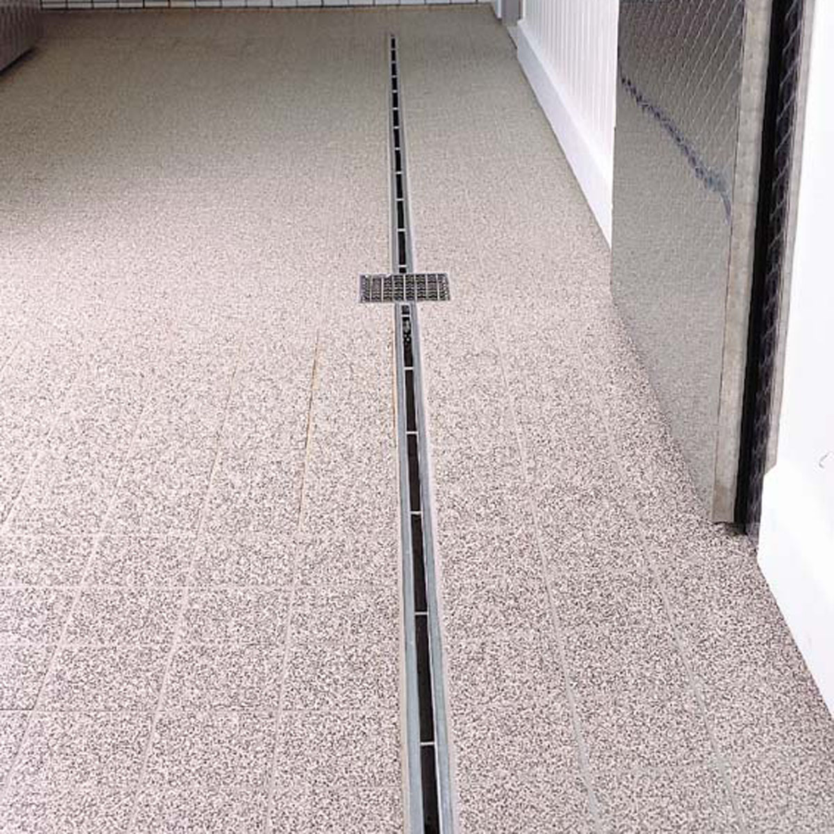 Tento dvodňovací systém je navrhnutý s ohľadom na minimalistický dizajn pri zachovaní maximálnej účinnosti a funkčnosti. Systém teda nemá čisto priemyselný vzhľad, tým pádom nenarúša vzhľad podlahy. Napriek svojmu primárne priemyselnému určeniu sa náš štrbinový odvodňovací žľab môže pochváliť veľmi estetickým dizajnom a kryt vpustu je možné osadiť kachličkou epoxidom betónovu dlažbou či inou finálnou úpravou a tak dokonle zapadne do okolitého povrchu a nenaruší ucelený dojem z podlahy.