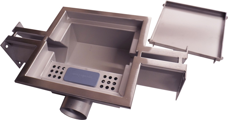 Ako už bolo spomenuté, štrbinový odvodňovací systém je kompletný, takže jeho súčasťou je aj protizápachový sifón s lapačom sedimentov, ktorý je určený na zachytávanie nečistôt, ako je blato alebo lístie (ak je odvodňovací systém inštalovaný v exteriéry). Táto dôležitá súčasť zabezpečí, že sa do kanalizačného potrubia nedostanú hrubé nečistoty a neupchajú ho.
